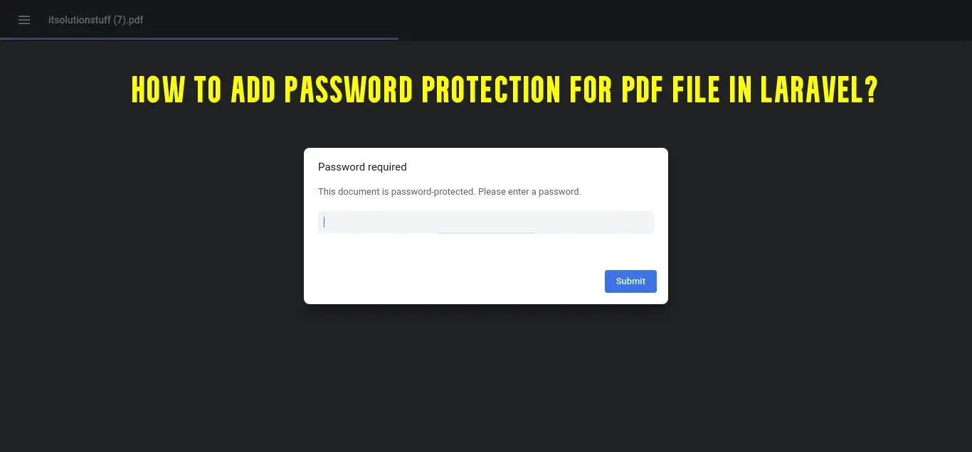 In this tutorial, I will show you how to add password protection in pdf file using laravel. we will use php-pdftk github composer package to protect the pdf file. php-pdftk provide setPassword(), setUserPassword() and passwordEncryption() method that can help to set password.