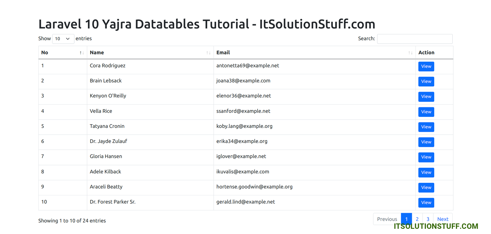 Now, let's see an article on laravel 10 yajra datatables example. I explained simply how to use yajra datatables in laravel 10. This article goes into detail on laravel 10 datatables example. if you want to see an example of laravel 10 yajra datatables server site server side then you are in the right place. you will do the following things for laravel 10 datatables ajax example.