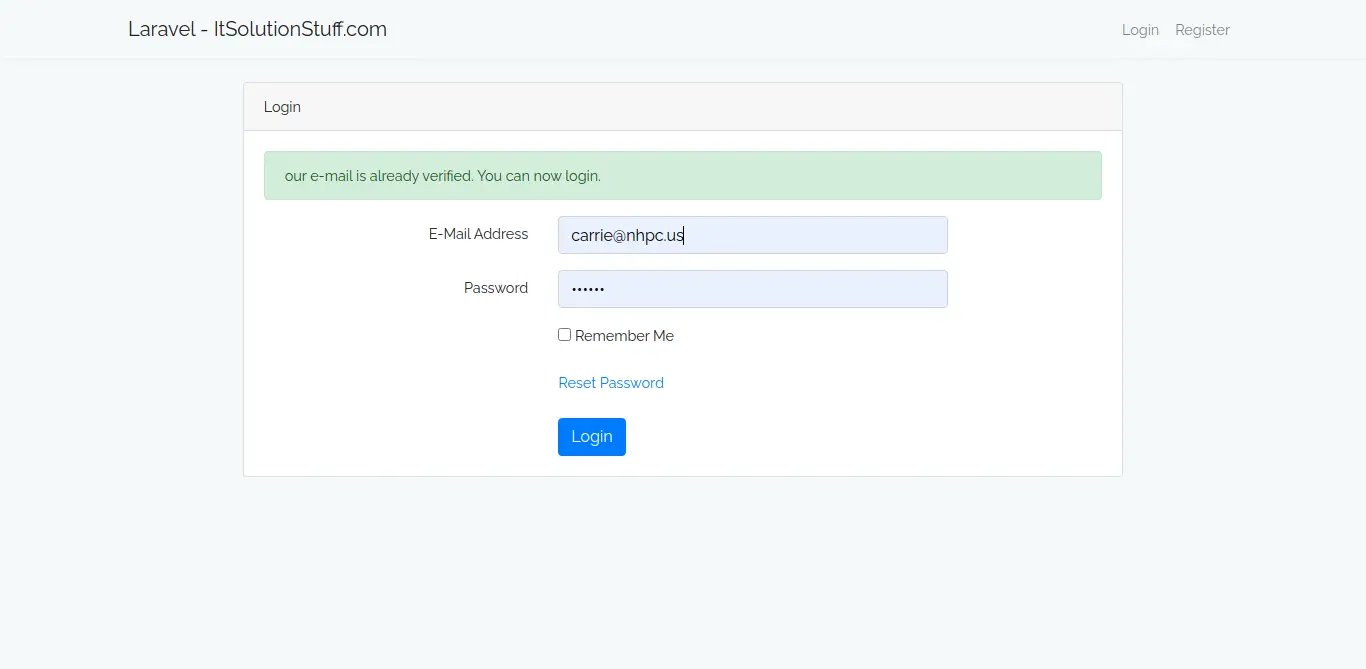 $message = "Your e-mail is already verified. You can now login.";