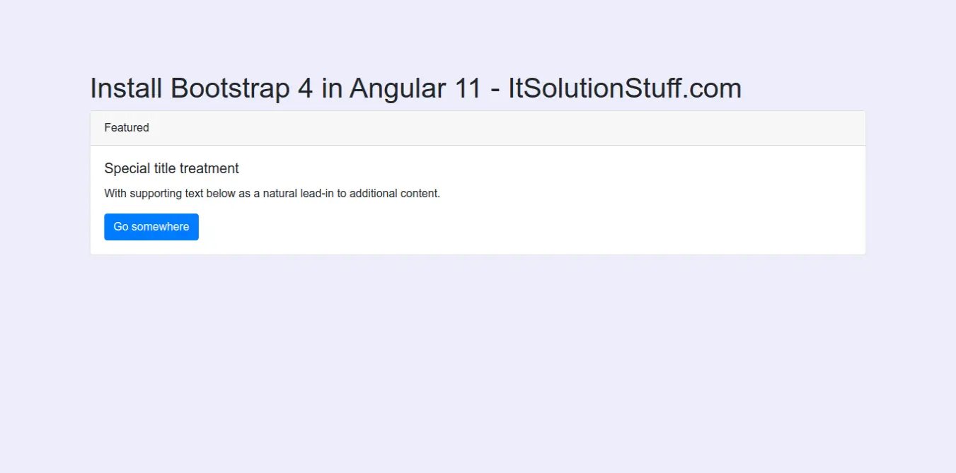 This tutorial will give you example of angular 11 add bootstrap. it's simple example of angular 11 install bootstrap 4. Here you will learn install bootstrap in angular 11. you will learn install bootstrap 4 in angular 11. Alright, letβs dive into the steps.