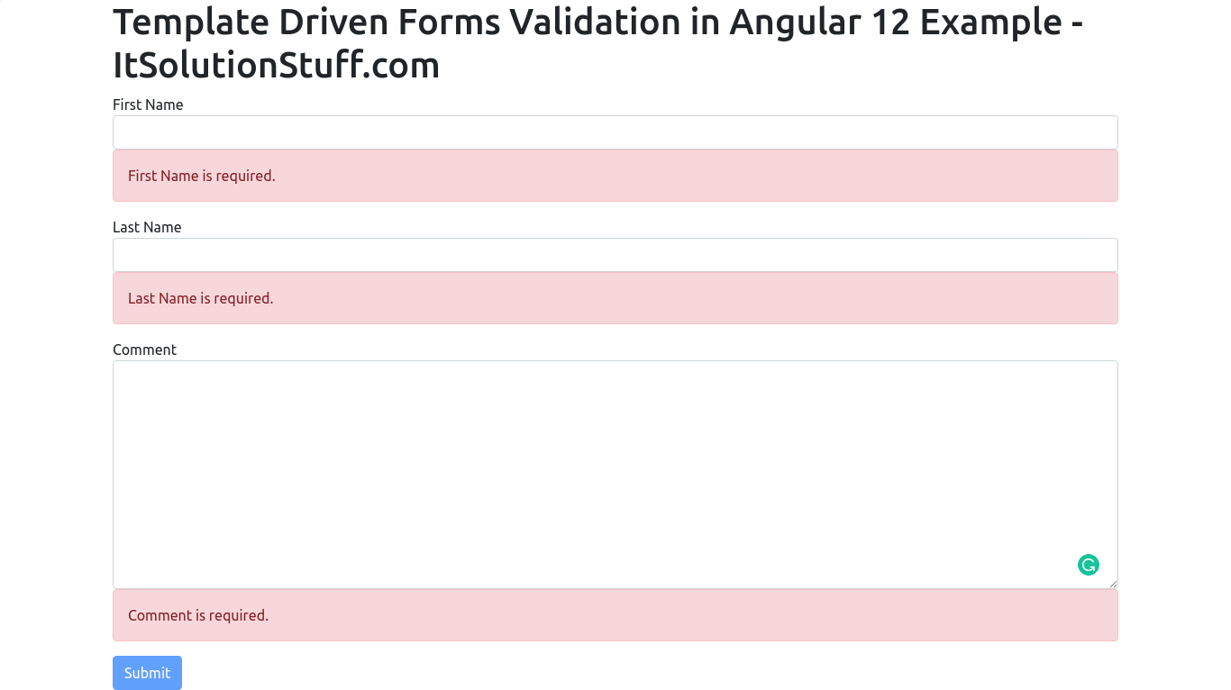 <h1>Template Driven Forms Validation in Angular 12 Example - ItSolutionStuff.com</h1>