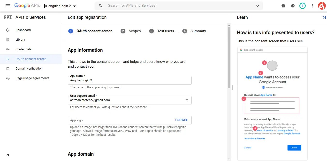 In this illustration, we're incorporating a button labeled "Login with Google." Upon clicking the button, a popup will appear prompting the user to grant access to their Gmail account for login purposes. To achieve Google account login in Angular 18, simply follow the steps outlined below: