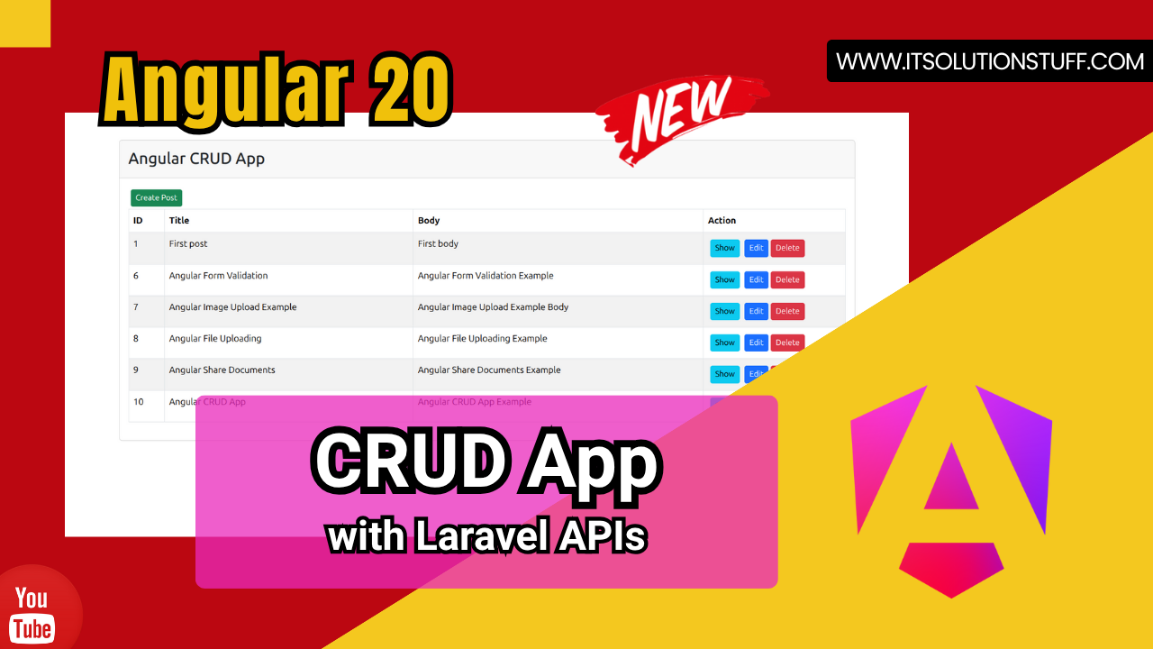 Hey there! The latest version of Angular, Angular 20, was released a few months back, packed with more features and improvements. If you're new to Angular or keen on learning how to create CRUD applications, you're in the right place. This post will guide you through building CRUD operations in Angular 20 with Bootstrap 5.