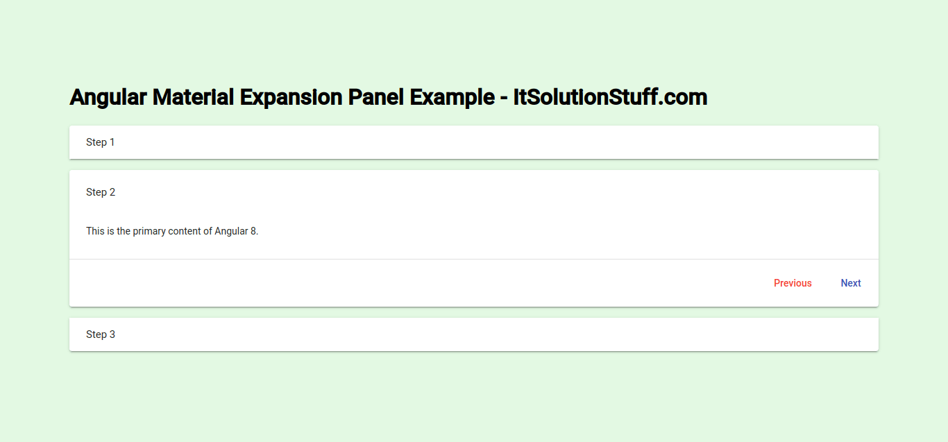 Example 2: Angular Material Expansion Panel with Next Previous Step Example