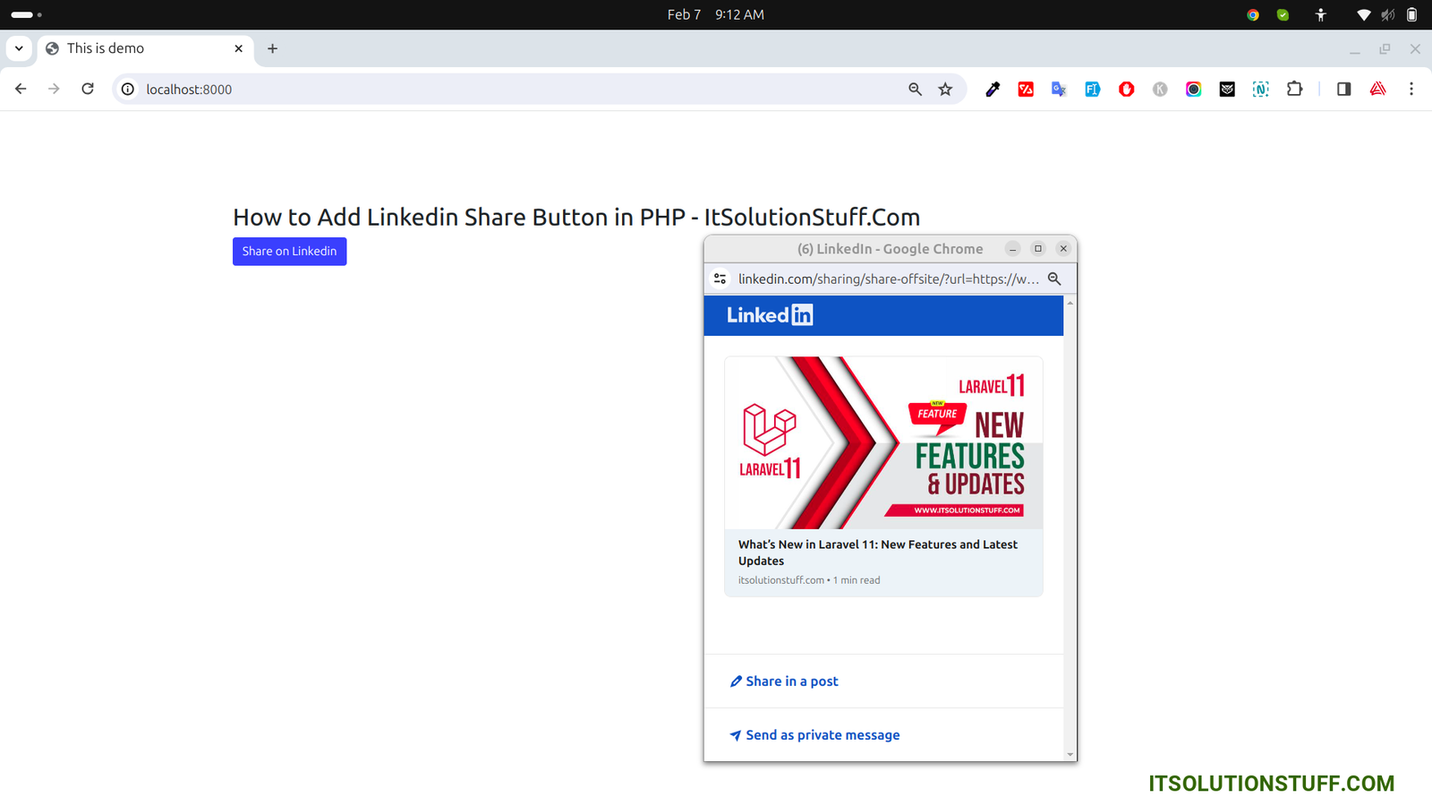 <h2>How to Add Linkedin Share Button in PHP - ItSolutionStuff.Com</h2>