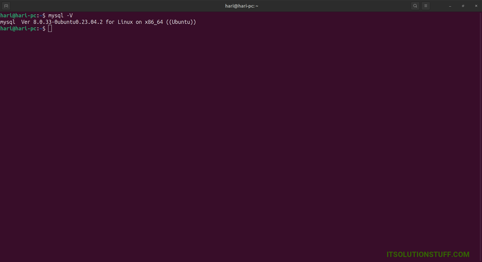 I will give you very simple command to check which version of mysql are you using it. it will show you the current installed mysql version in ubuntu 18.04, ubuntu 20.04, ubuntu 22.04 or ubuntu 23.04. so, let's see the following mysql command with -V option.