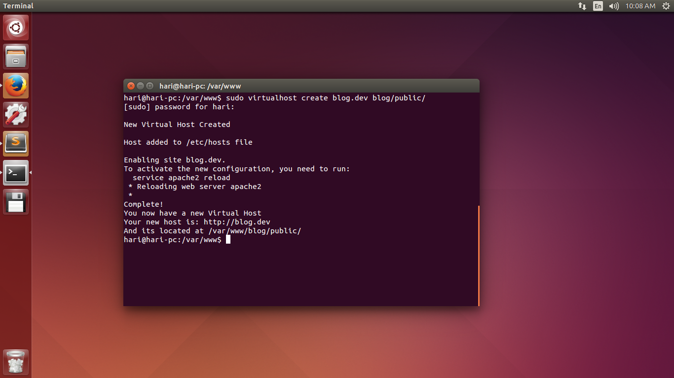 However, In this tutorial i am going to give you very quick way to create virtual host on your ubuntu os. You have to just install "Virtualhost Manage Script" at one time in your system. That script provide us "vistualhost" command and we can quick create and delete virtualhost. So just install this script by following 5 commands in your terminal: