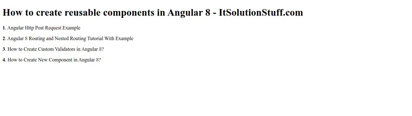 <h1>How to create reusable components in Angular 8 - ItSolutionStuff.com</h1>