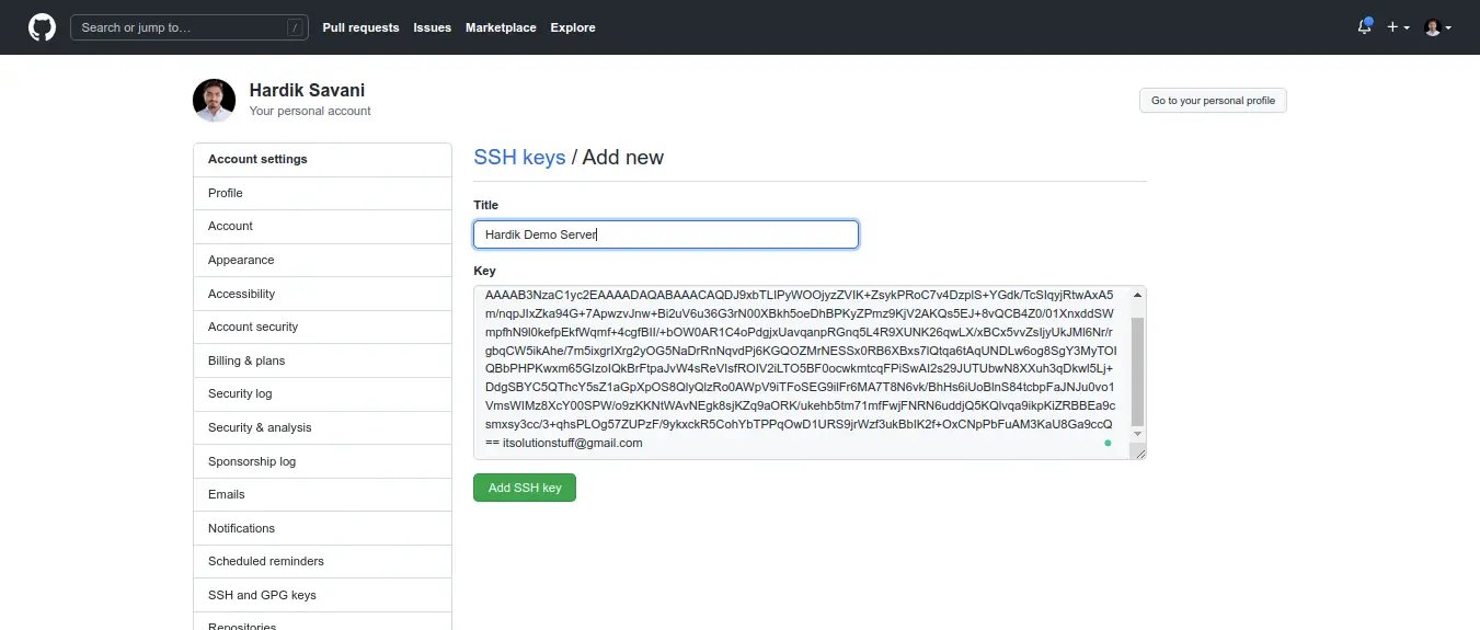 This article will provide example of how to generate and add ssh key in github. this example will help you how to add ssh key in github. We will use how to add ssh key to github repository. Iβm going to show you about how to add ssh key into github ubuntu. You just need to some step to done how to setup ssh key in github ubuntu.