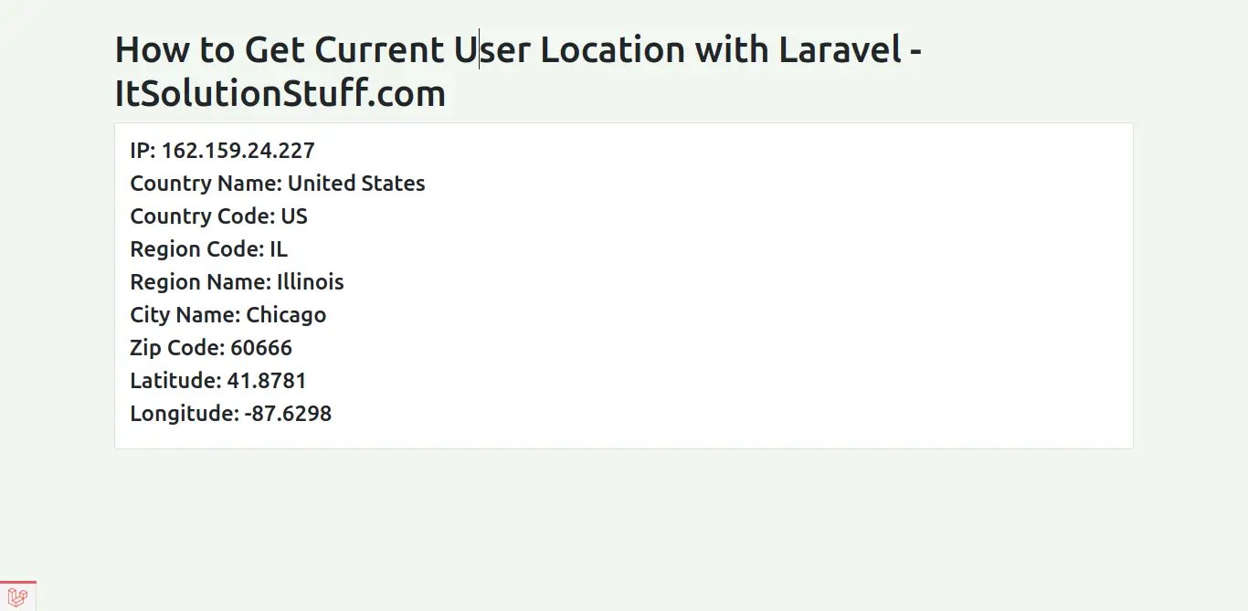This article will give you example of laravel get user current location. you will learn how to get current user location in laravel. i would like to share with you laravel get location from ip. In this article, we will implement a laravel get user location. Let's get started with laravel detect user location.