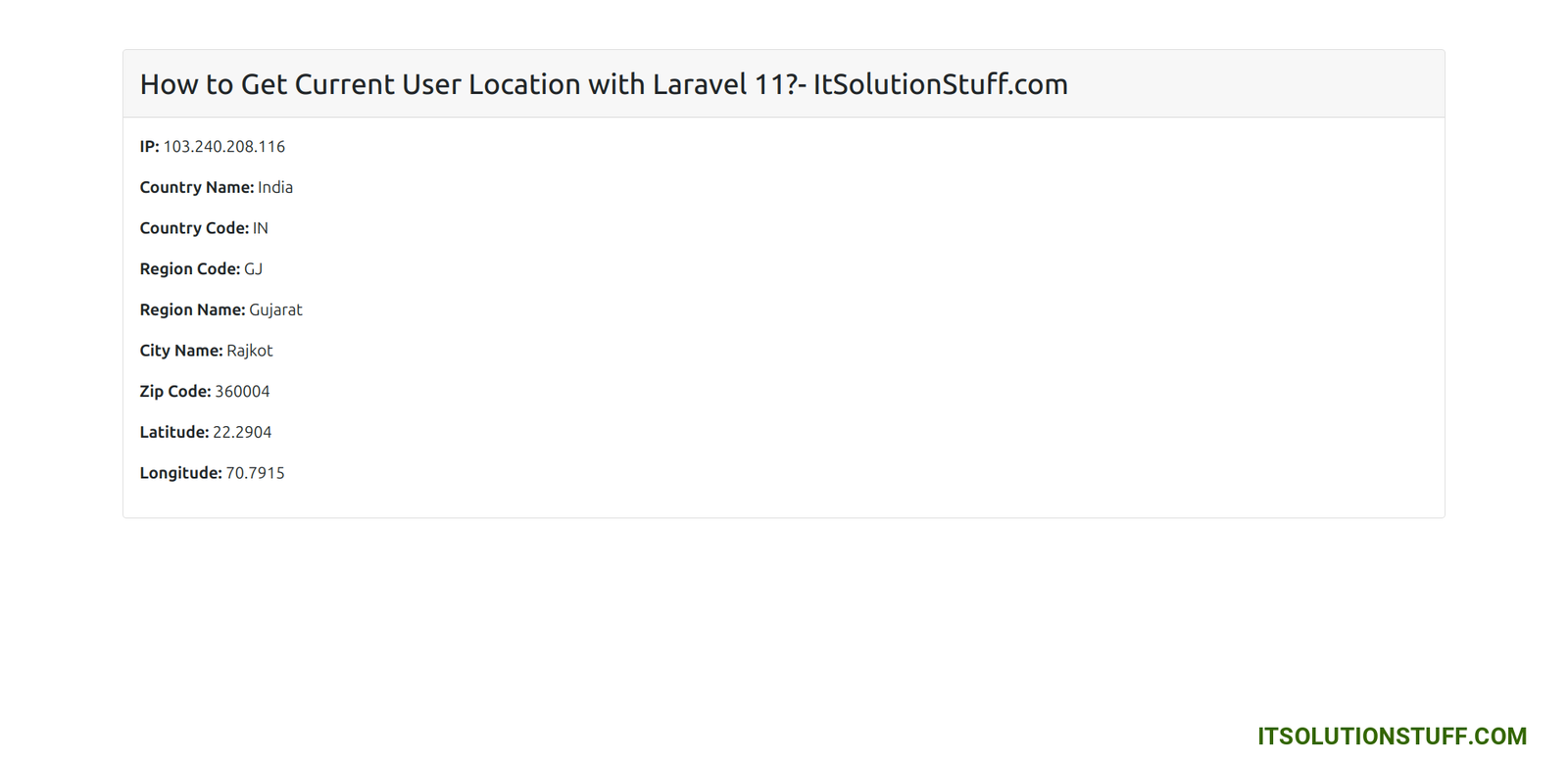 <h3 class="card-header p-3">How to Get Current User Location with Laravel 11?- ItSolutionStuff.com</h3>