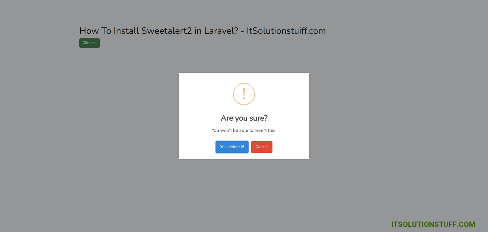 In this tutorial, we will go over the demonstration of how to install sweetalert2 in laravel. This article goes in detailed on how to add sweetalert2 in laravel. letβs discuss about how to install sweetalert2 in laravel 10. This article will give you a simple example of laravel install sweetalert2 npm.