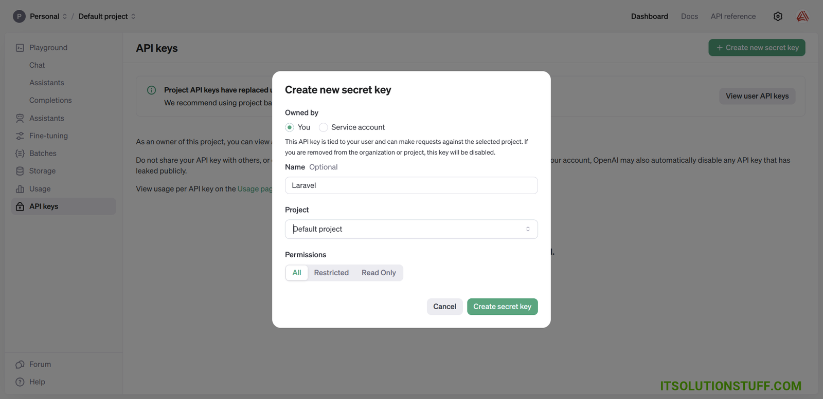 php artisan vendor:publish --provider="OpenAI\Laravel\ServiceProvider"Step 3: Create OpenAI Account