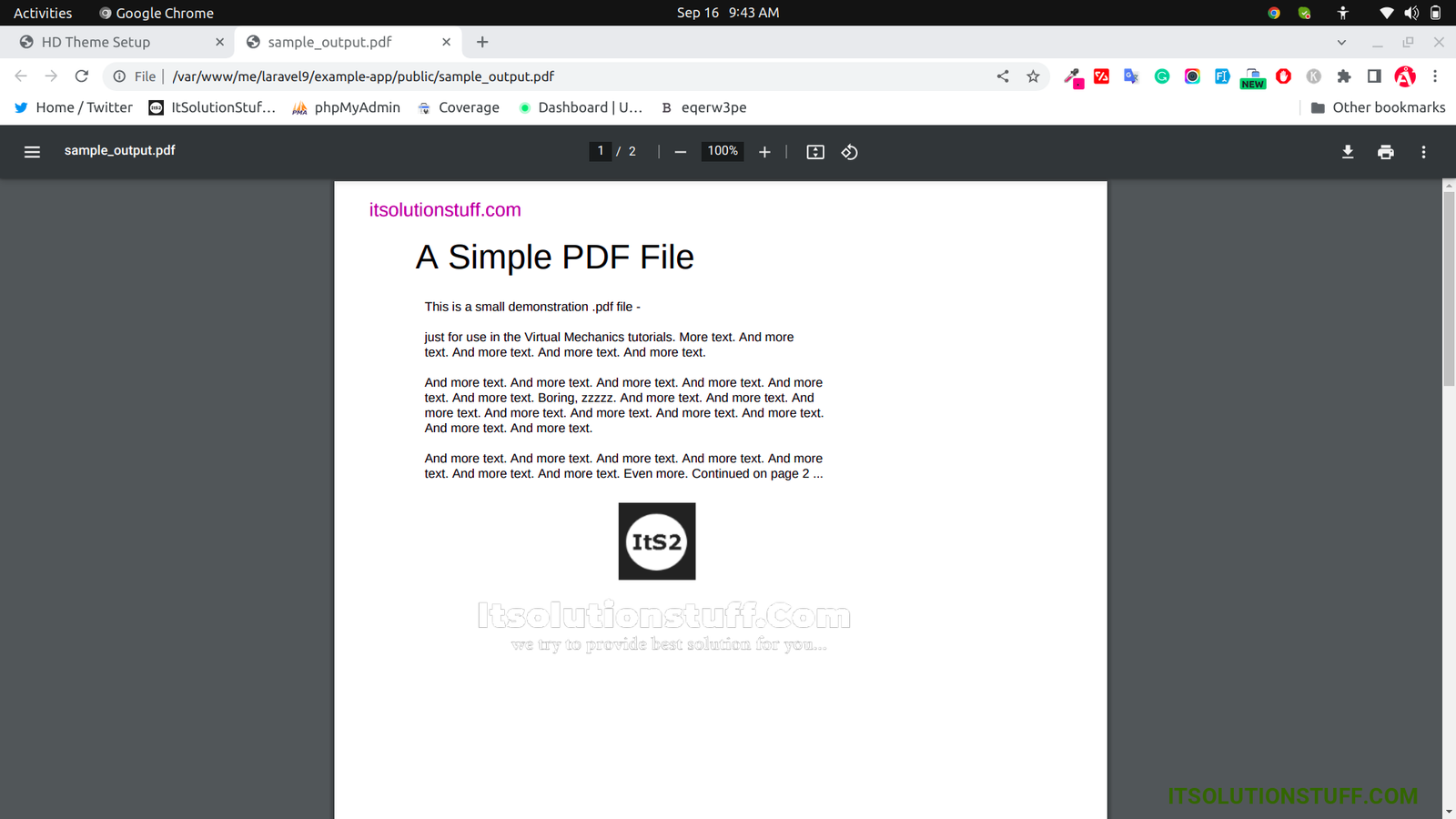 In this example, i will take one sample.pdf file and add text as itsolutionstuff.com with image on that pdf file. Then we will save that file as sample_output.pdf file. so let's see the below step to do this example.