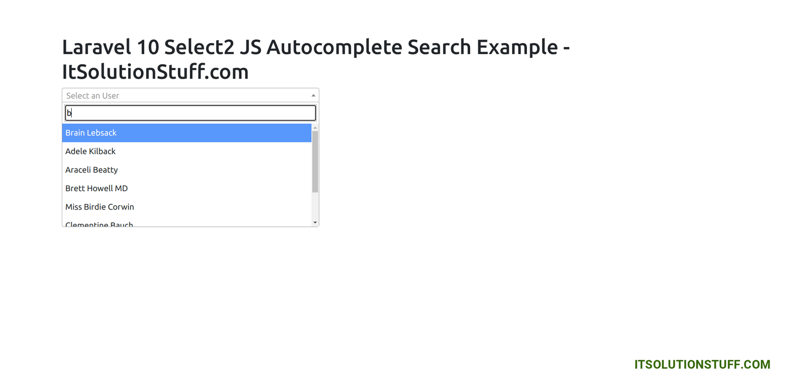 <title>Laravel 10 Select2 JS Autocomplete Search Example - ItSolutionStuff.com</title>