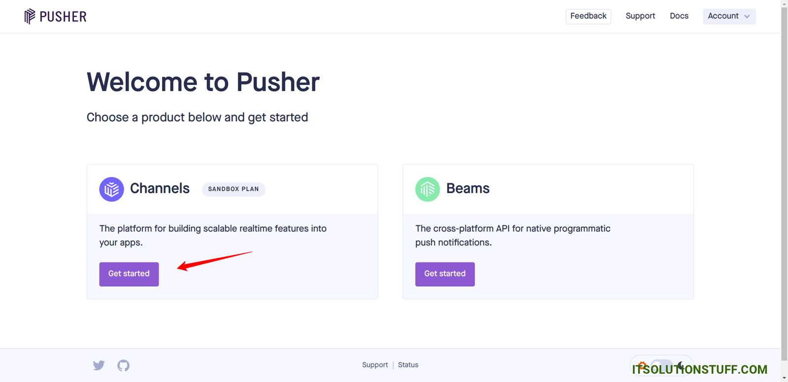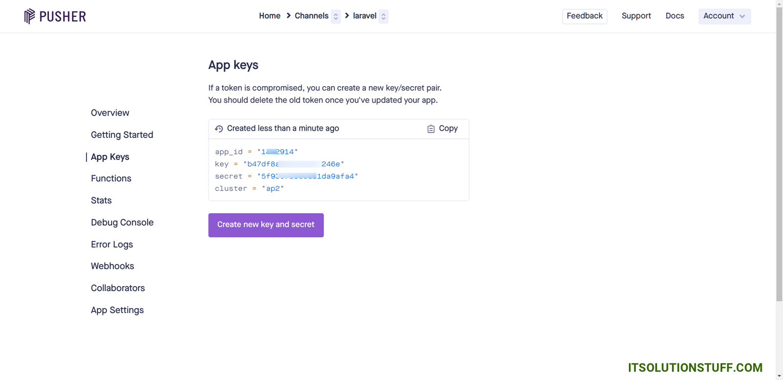 First of all, we will create account on pusher website and get App ID, Secret, Cluster and Key. so, let's create it now.