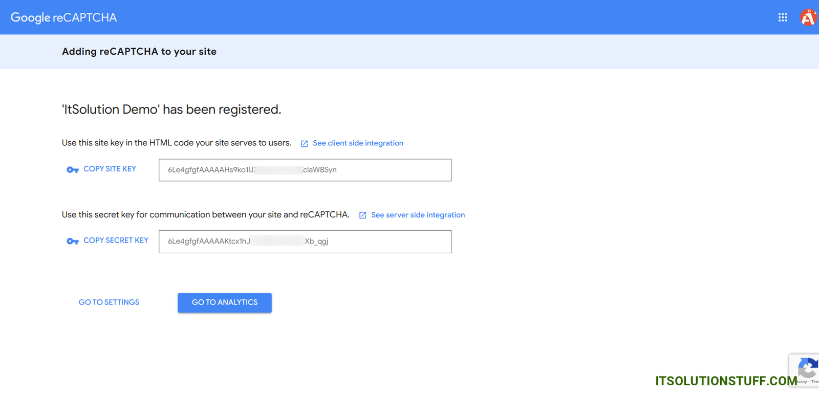 Ok, after successfully register you can get site key and secret key from like bellow preview.