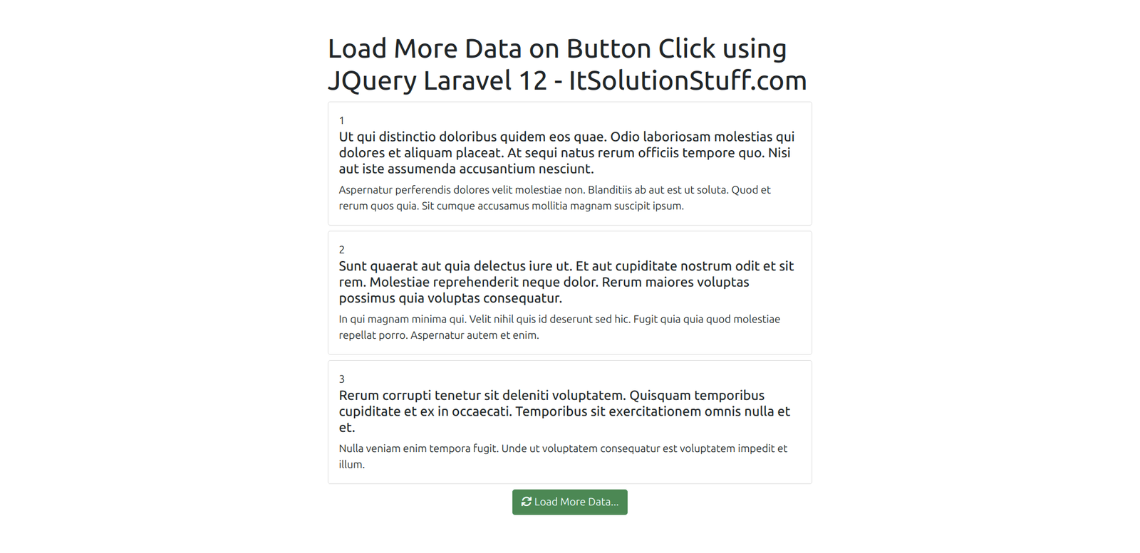 <h1>Load More Data on Button Click using JQuery Laravel 12 - ItSolutionStuff.com</h1>