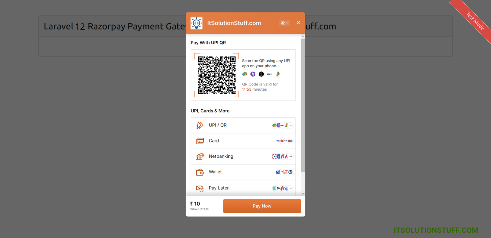 <h3 class="card-header p-3">Laravel 12 Razorpay Payment Gateway Integration - ItSolutionStuff.com</h3>
