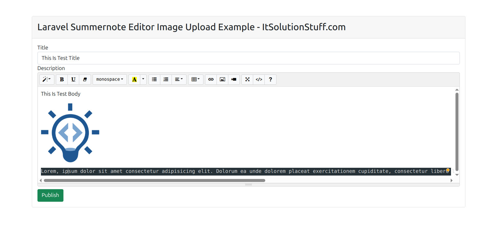 <h3 class="card-header p-3">Laravel 12 Summernote Editor Image Upload Example - ItSolutionStuff.com</h3>