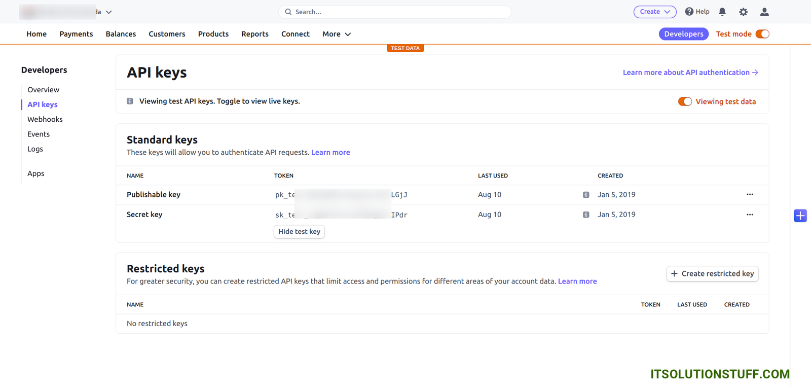 After login, You need to go on Developers tab and get API keys as like below: