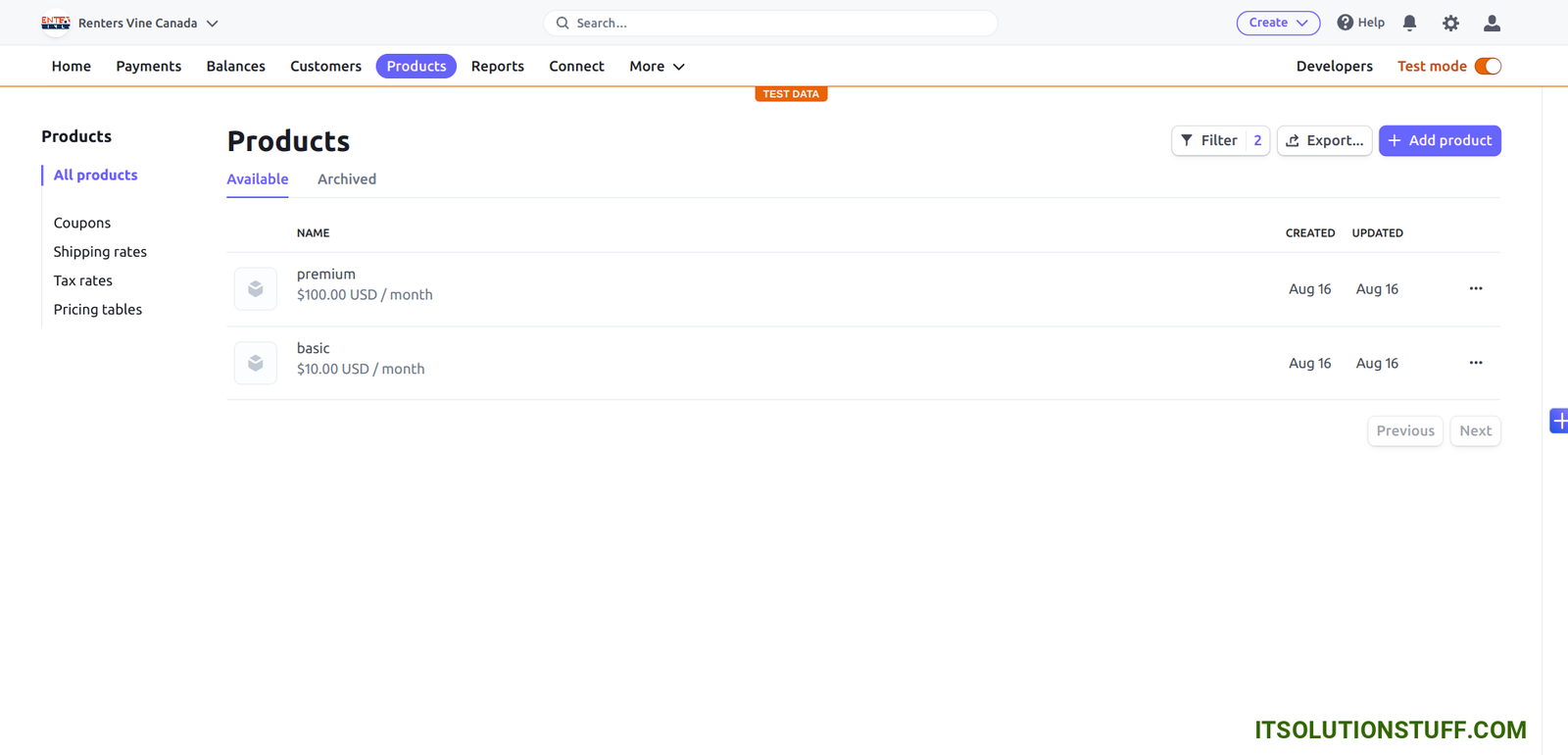 Next, you need to go on Products tab and create following two plans: