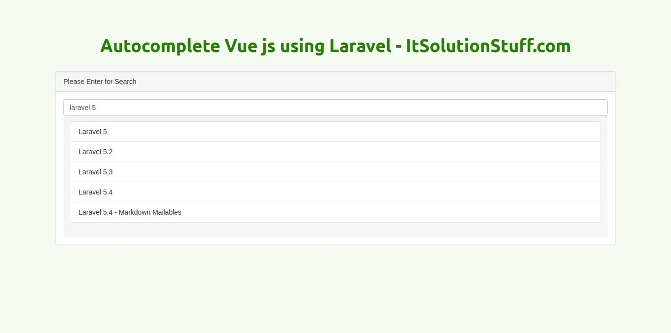 Today, we are going to learn ajax live search and autocomplete using vue js components in laravel 5.6 application. here we will create simple and nice example of autocomplete in vue.js using laravel api. we will use axios for getting records in vue js, so just follow this tutorial and get full example.