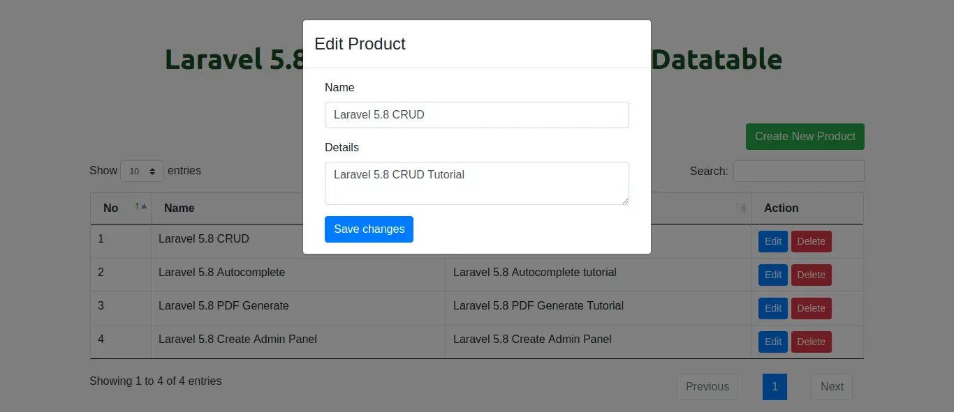 I will provide you step by step guide to create ajax crud example with laravel 5.8. you just need to follow few step to get c.r.u.d with modals and ajax. you can easily use with your laravel 5.8 project and easy to customize it.