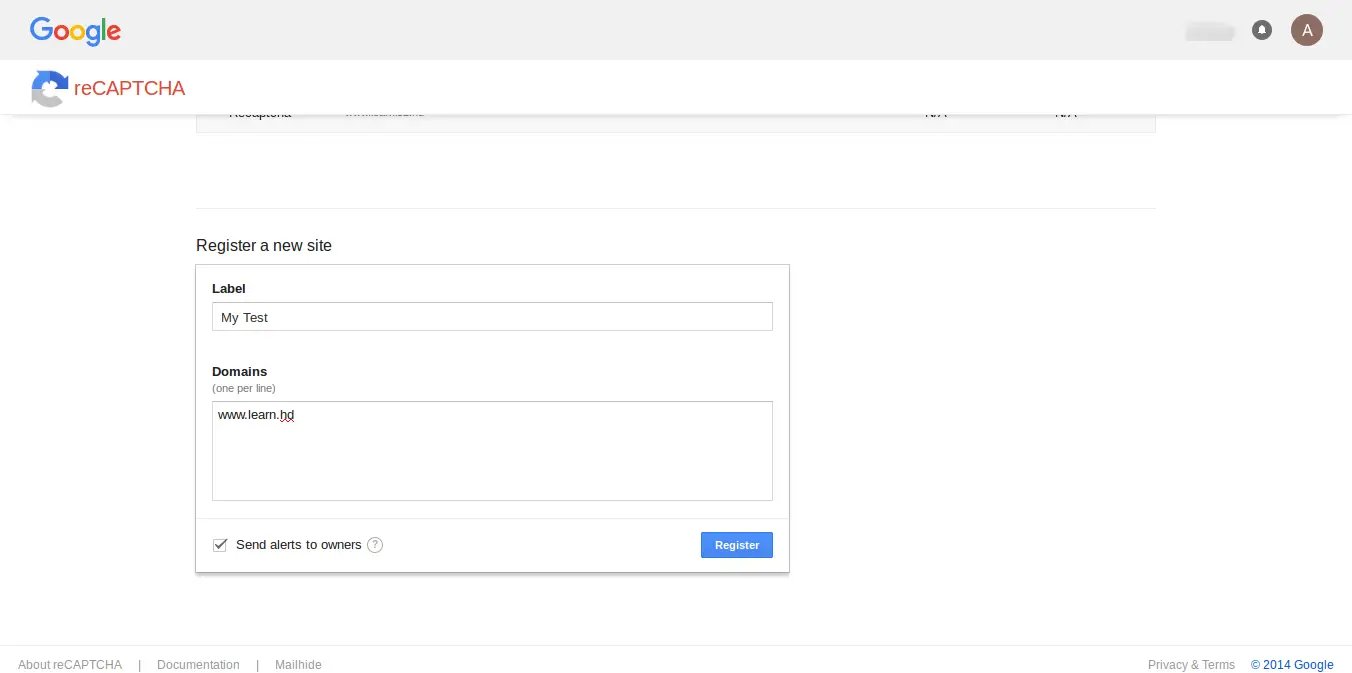 In this step we need to set google site key and secret key. If you don't have site key and secret key then you can create from here. First click on this link : Recaptcha Admin