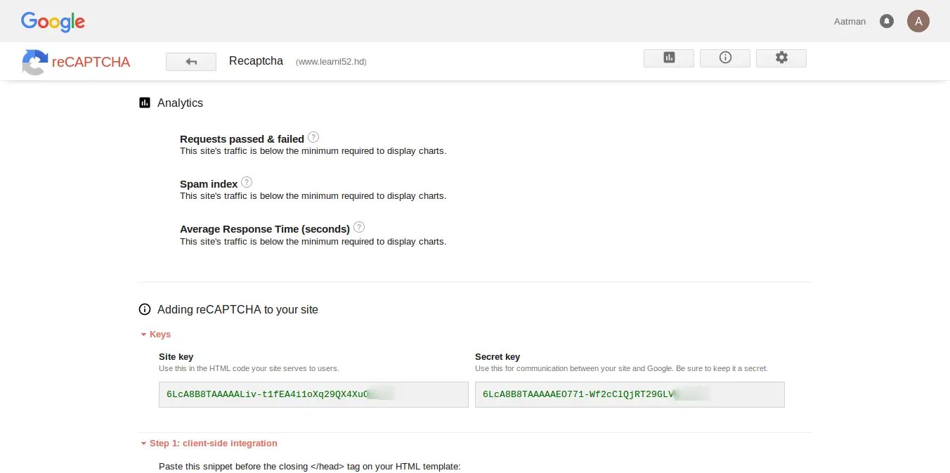 Ok, after sucessfully register you can get site key and secret key from like bellow preview.