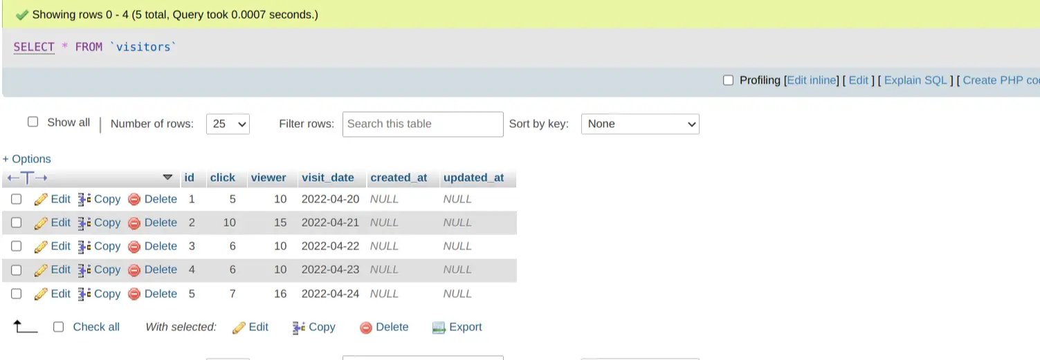 In this example, we will create a visitors table with a date, click, and views column. we will add dummy records every day. Then we fetch and display it in a google pie chart. So you can follow the below step and learn how to use the google pie chart in laravel.