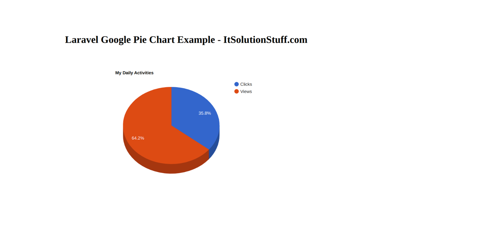 This article will give you example of laravel google pie chart example. step by step explain laravel pie chart example. it's simple example of how to use google pie chart in laravel. you can understand a concept of google pie chart in laravel. Follow bellow tutorial step of laravel google pie chart tutorial.