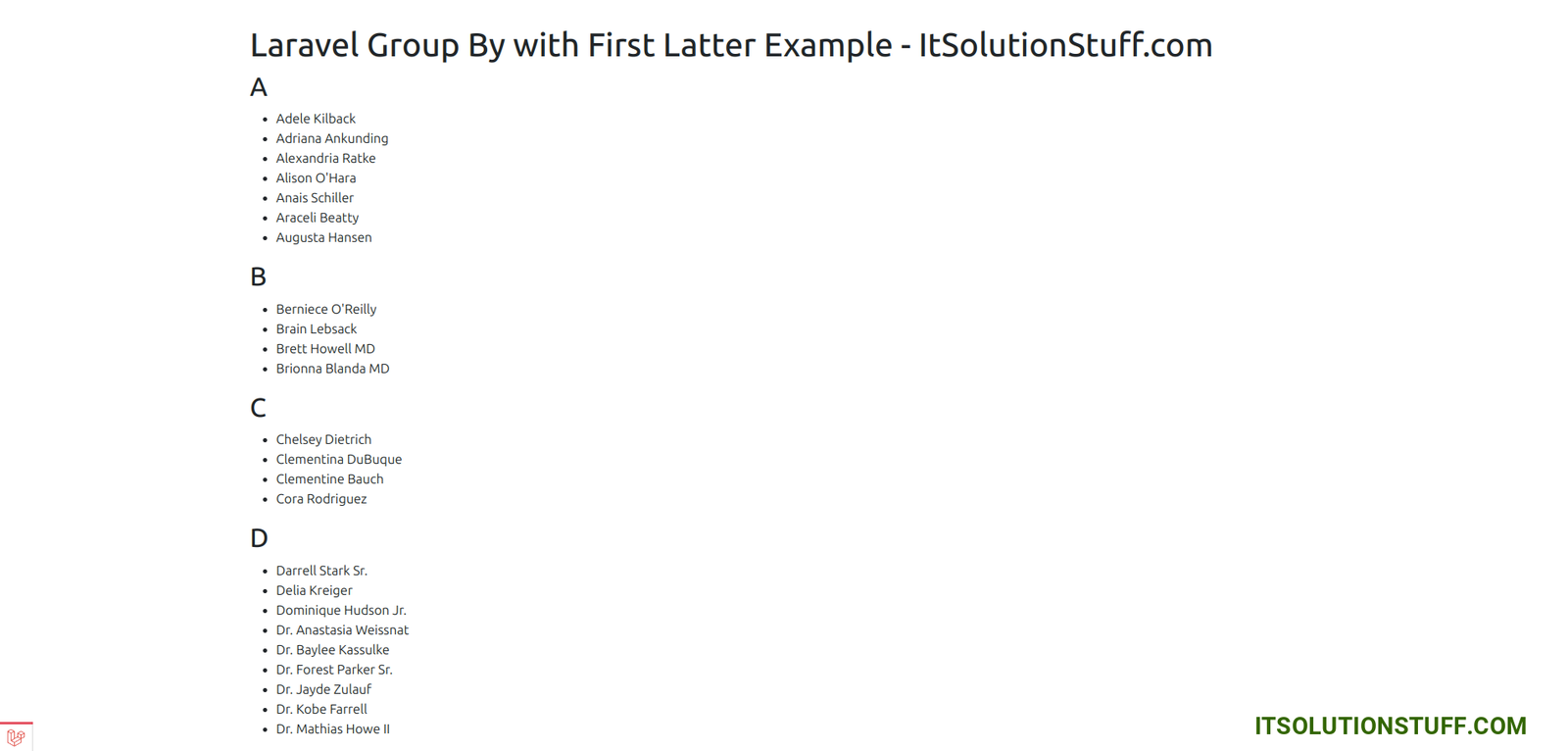 <title>Laravel Group By with First Latter Example - ItSolutionStuff.com</title>