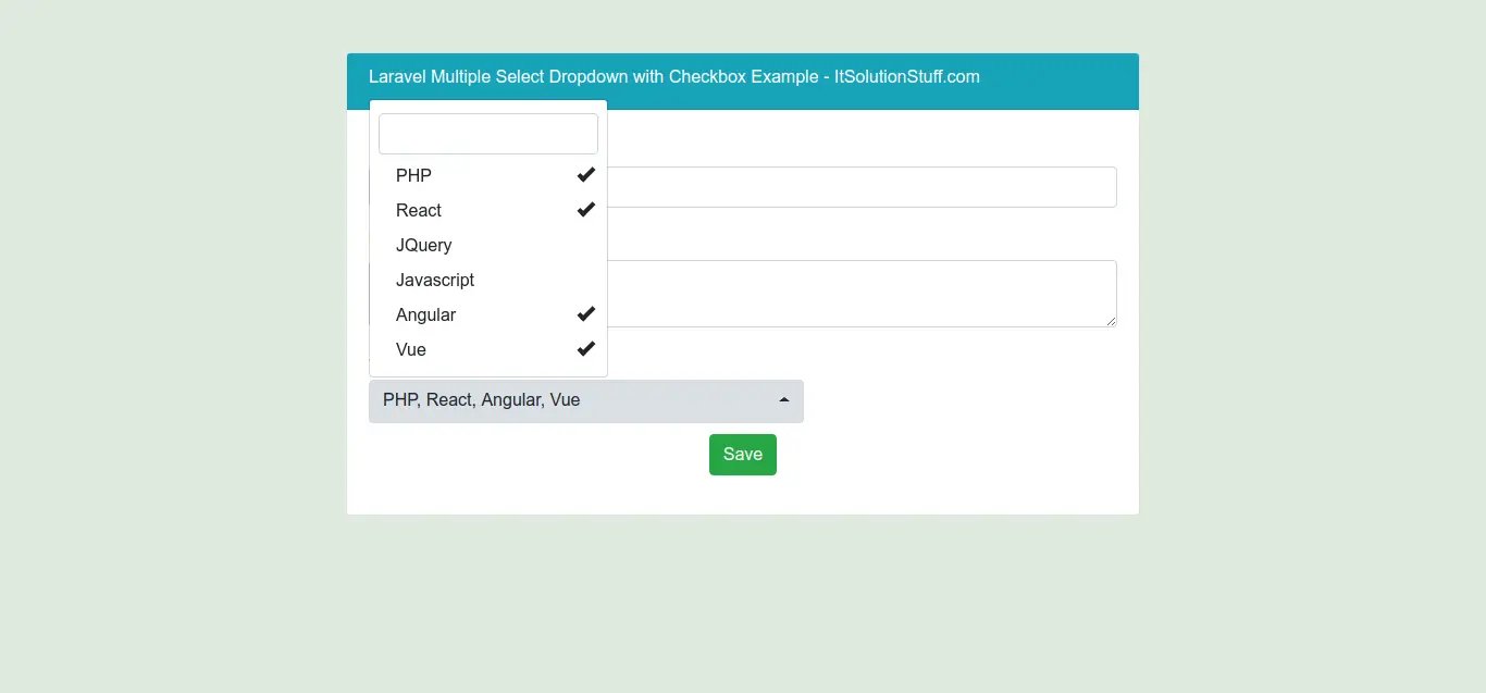 <title>Laravel Multiple Select Dropdown with Checkbox Example - ItSolutionStuff.com</title>