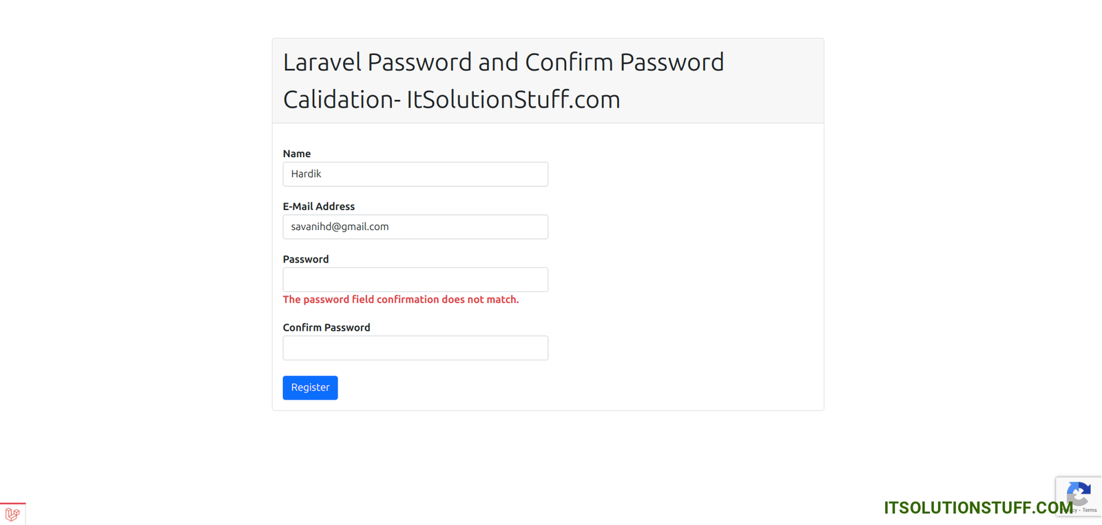 Laravel Password and Confirm Password Validation Example
