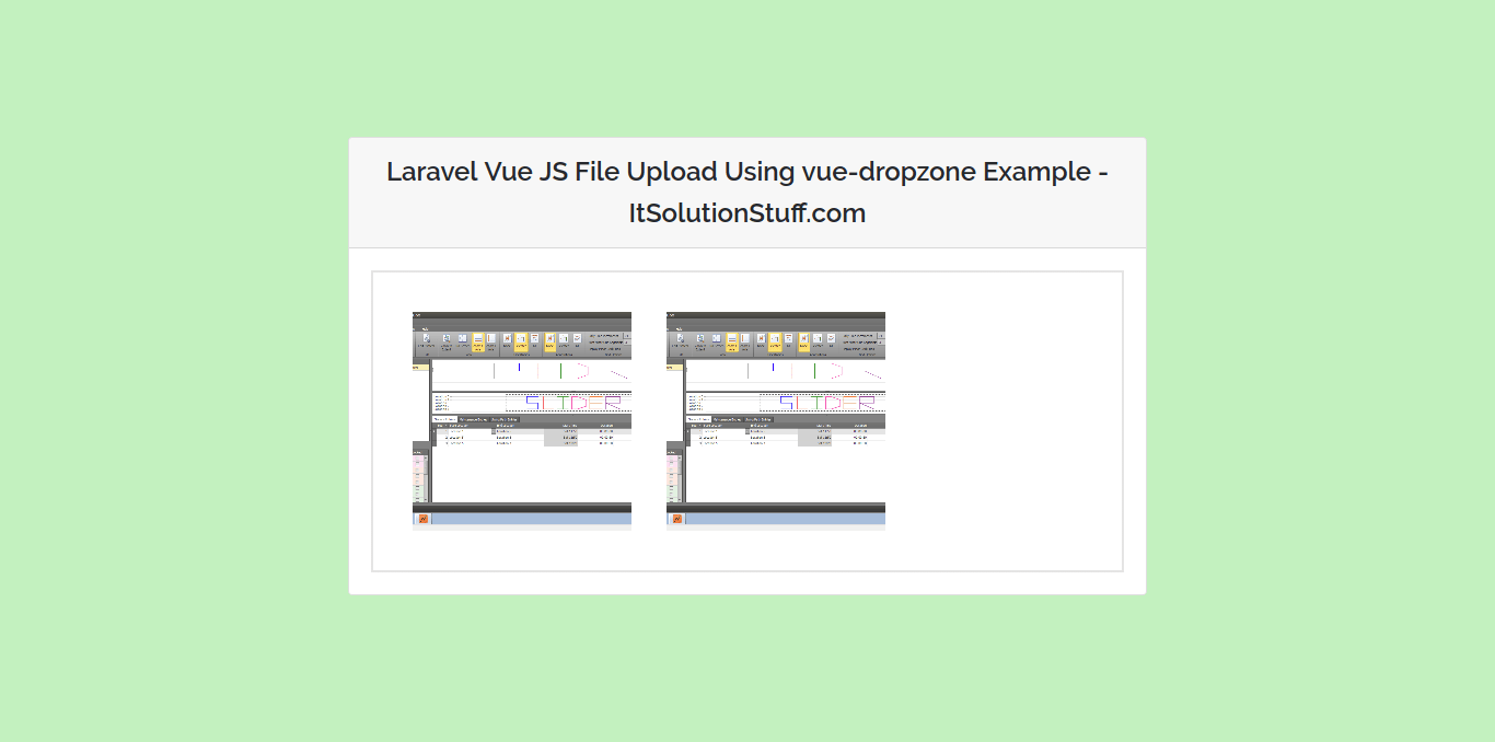 <title>Laravel Vue JS File Upload Using vue-dropzone Example - ItSolutionStuff.com</title>