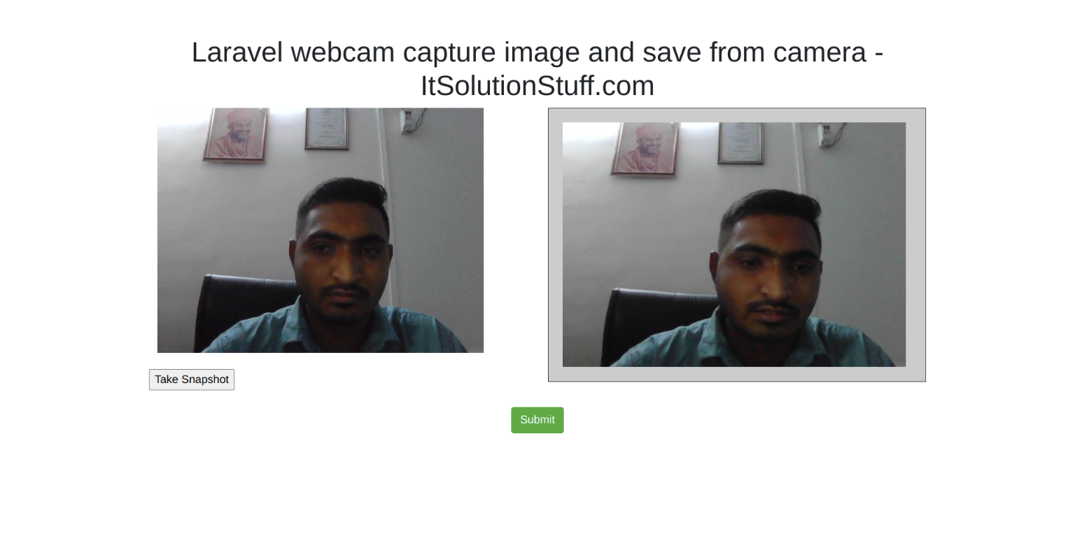 In this short tutorial we will cover an laravel webcam capture image and save from camera. if you want to see example of capture image from webcam and store in database in laravel then you are a right place. you will learn webcam take a photo laravel. you will learn laravel webcam take screenshot. Follow bellow tutorial step of laravel webcam take screenshot and save from camera.