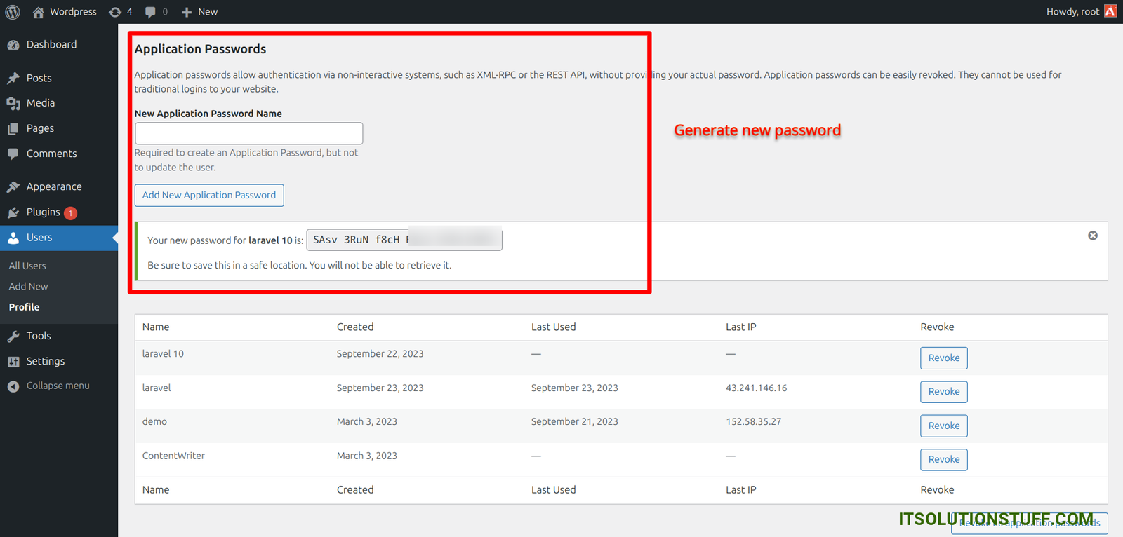 Next, you need to generate new password to click on "New Application Password" button.