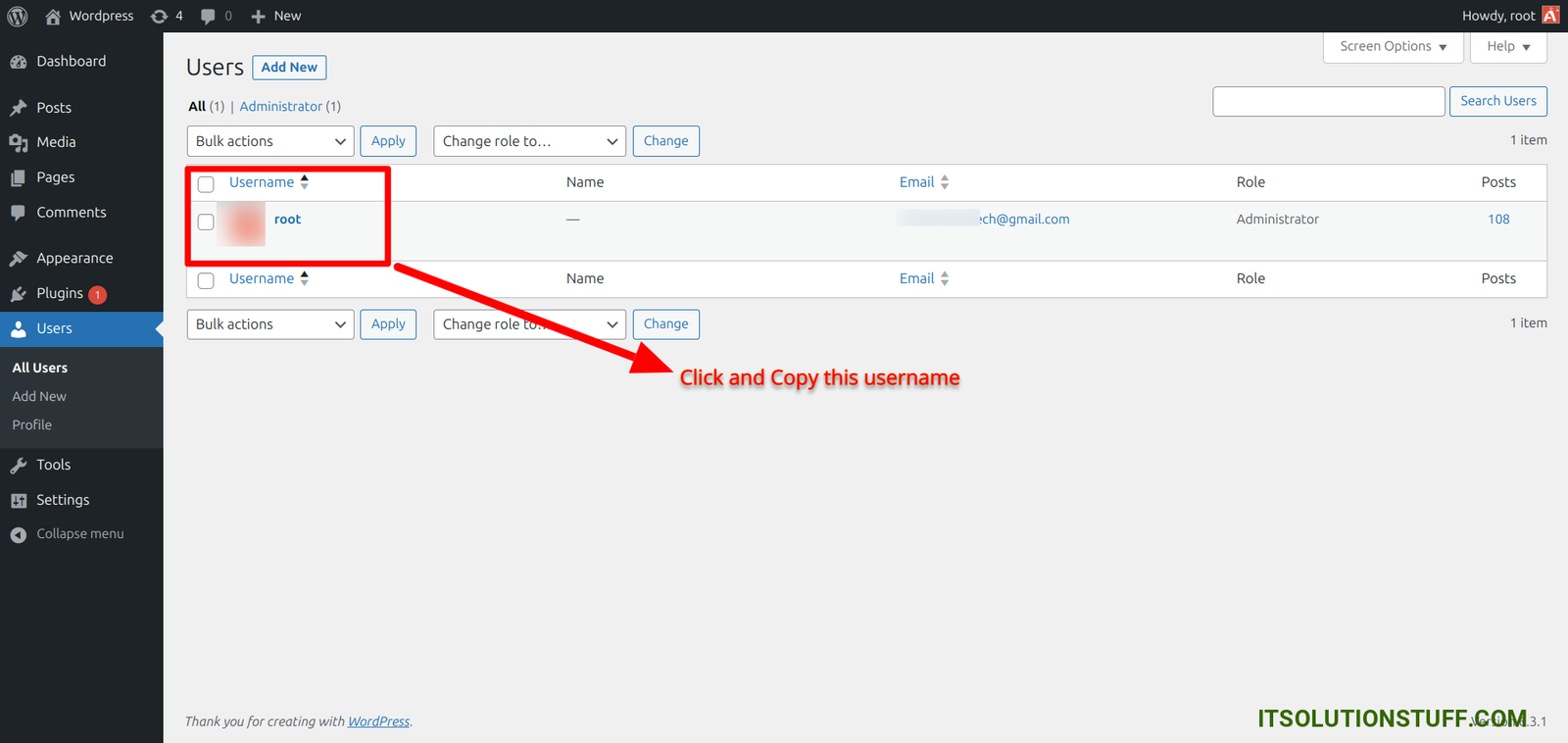 Next, go to users list page with following url, then copy username and click on it: