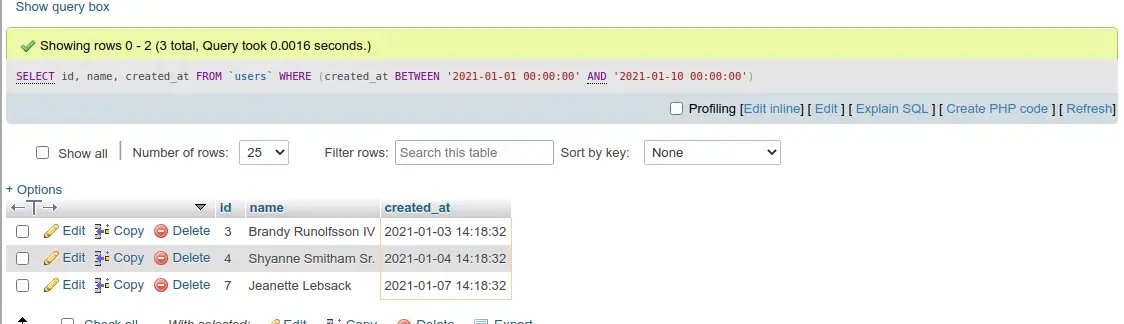 WHERE (created_at BETWEEN '2021-01-01 00:00:00' AND '2021-01-10 00:00:00')