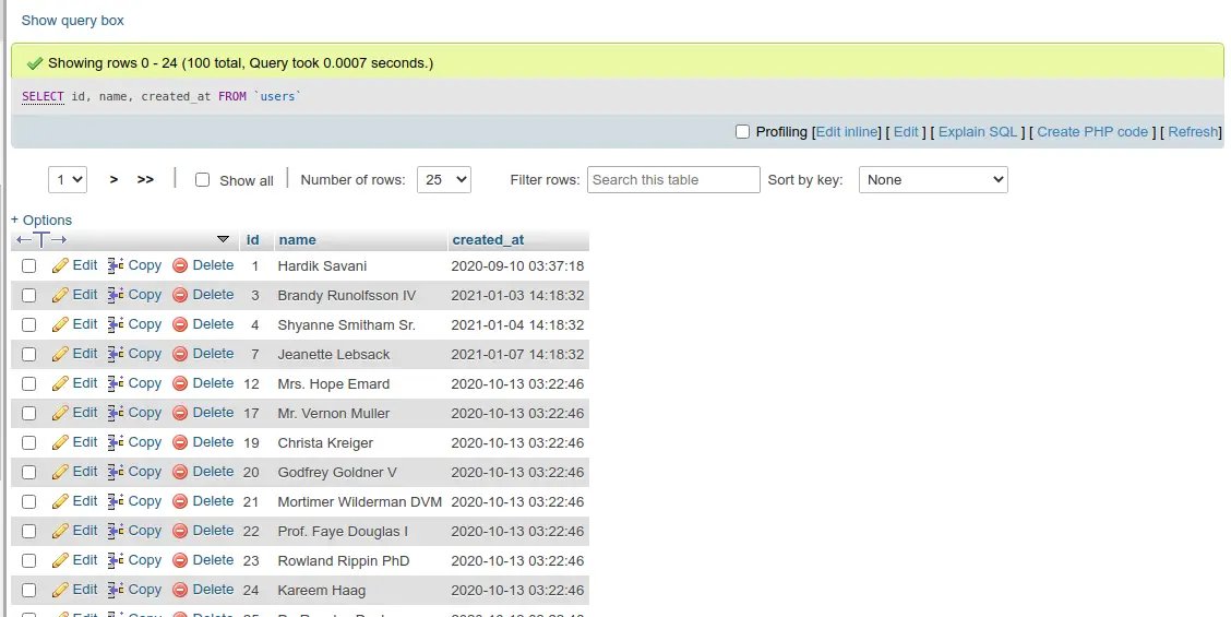 SELECT id, name, created_at