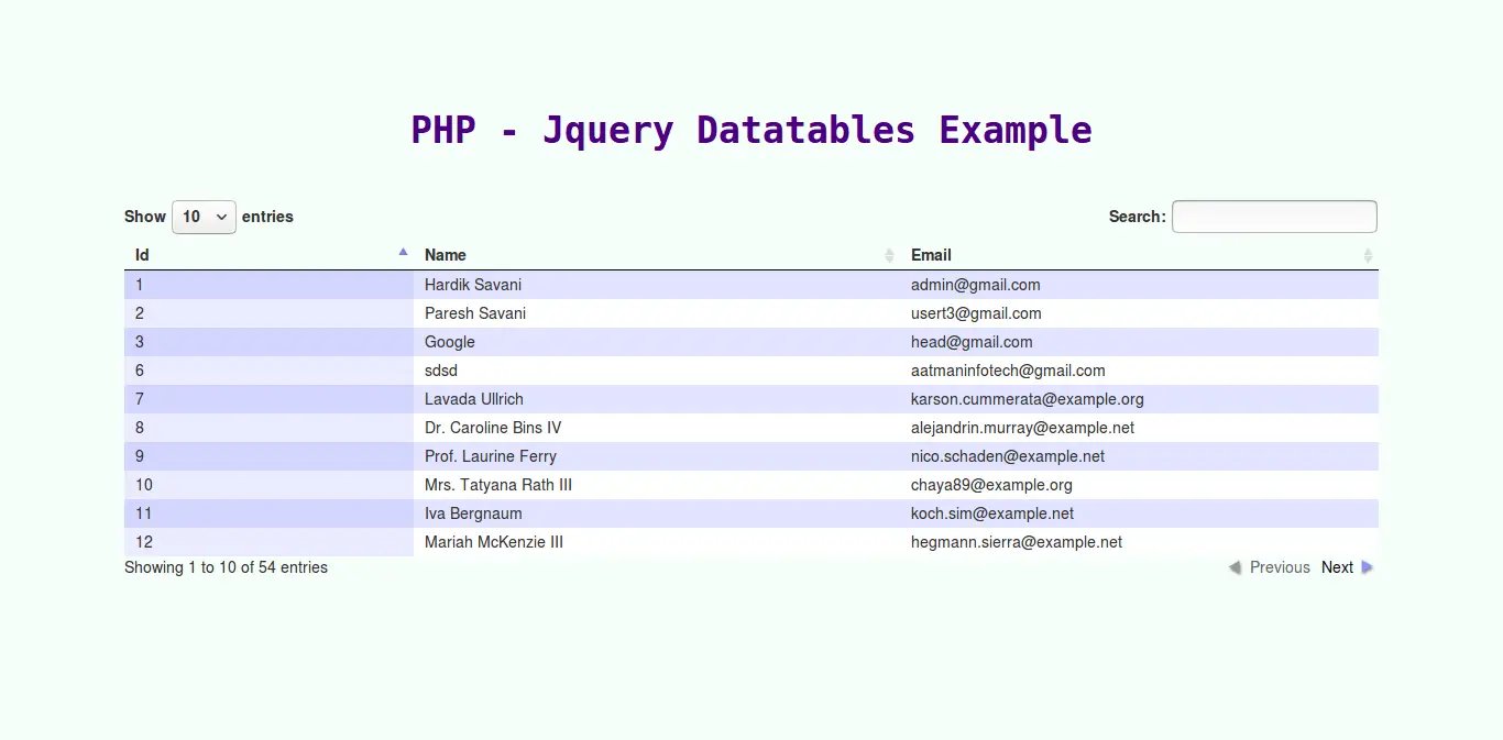Today, i am going to share with you how to use jQuery datatable plugin in php mysql project. i will also describe small example of data table with server side scripting, here i will use PHP and MySQL to get data from server side. So you have to simple follow few step and will get small quick example.